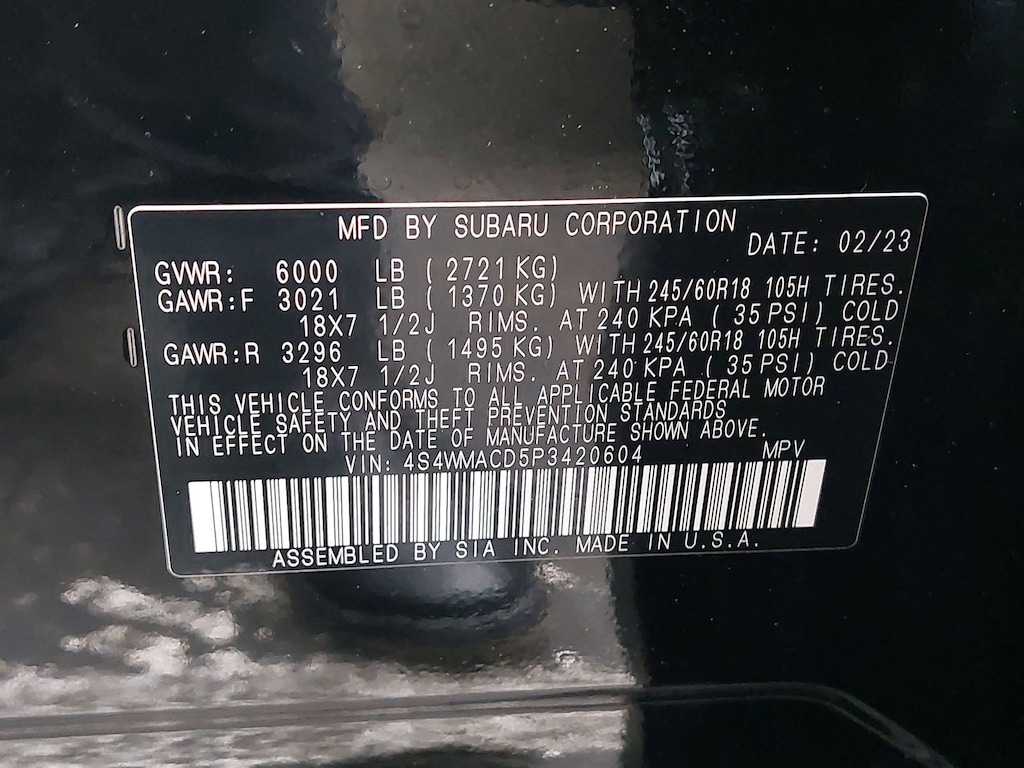Subaru Certifed, Clean Carfax, Carfax One Owner. Convenience Package (Auto-Dimming Rear View Compass Mirror w/HomeLink, Keyless Access w/Push-Button Start, Power Rear Gate w/Automatic Close & Height Memory, and Reverse Automatic Braking (RAB) System), Subaru Certified Pre-Owned Certified, 3rd row seats: bench, 4-Wheel Disc Brakes, 6 Speakers, ABS brakes, Air Conditioning, Alloy wheels, AM/FM radio: SiriusXM, Auto High-beam Headlights, Automatic temperature control, Axle Ratio: 4.44, Brake assist, Bumpers: body-color, Cargo Cover, Delay-off headlights, Driver door bin, Driver vanity mirror, Dual front impact airbags, Dual front side impact airbags, Electronic Stability Control, Emergency communication system: STARLINK Safety and Security (Subscription Required), Exterior Parking Camera Rear, Four wheel independent suspension, Front anti-roll bar, Front Bucket Seats, Front Center Armrest, Front dual zone A/C, Front reading lights, Fully automatic headlights, Heated door mirrors, Heated Front Bucket Seats, Heated front seats, Illuminated entry, Knee airbag, Leather Shift Knob, Leather steering wheel, Low tire pressure warning, Occupant sensing airbag, Outside temperature display, Overhead airbag, Overhead console, Panic alarm, Passenger door bin, Passenger vanity mirror, Power door mirrors, Power driver seat, Power steering, Power windows, Radio data system, Radio: Subaru STARLINK 11.6" Multimedia Plus System, Rear air conditioning, Rear anti-roll bar, Rear reading lights, Rear seat center armrest, Rear window defroster, Rear window wiper, Reclining 3rd row seat, Remote keyless entry, Security system, Speed control, Speed-sensing steering, Spill Resistant Coated Cloth Upholstery, Split folding rear seat, Spoiler, STARLINK/Apple CarPlay/Android Auto, Steering wheel mounted audio controls, Tachometer, Telescoping steering wheel, Tilt steering wheel, Traction control, Trip computer, Turn signal indicator mirrors, Variably intermittent wipers, and Wheels: 18" x 7.5 J Gray Alloy w/Machine Finish.