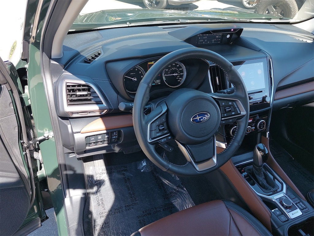 Subaru Certifed, Clean Carfax, Carfax One Owner. Popular Package #2 (All-Weather Floor Liners, Auto-Dimming Exterior Mirror w/Approach Light, Auto-Dimming Mirror w/Compass & HomeLink, Cargo Net, and Rear Bumper Cover), Standard Model, Subaru Certified Pre-Owned Certified, 3.70 Axle Ratio, 4-Wheel Disc Brakes, 9 Speakers, ABS brakes, Air Conditioning, Alloy wheels, AM/FM radio: SiriusXM, Anti-whiplash front head restraints, Auto High-beam Headlights, Automatic temperature control, Brake assist, Bumpers: body-color, CD player, Driver door bin, Driver vanity mirror, Dual front impact airbags, Dual front side impact airbags, Electronic Stability Control, Emergency communication system: STARLINK Safety and Security (Subscription Required), Exterior Parking Camera Rear, Four wheel independent suspension, Front anti-roll bar, Front Bucket Seats, Front Center Armrest, Front dual zone A/C, Front fog lights, Front reading lights, Fully automatic headlights, harman/kardon 9-Speaker Audio System, harman/kardon® Speakers, Heated door mirrors, Heated Front Bucket Seats, Heated front seats, Heated rear seats, Heated steering wheel, HVAC memory, Illuminated entry, Knee airbag, Leather Shift Knob, Low tire pressure warning, Memory seat, Navigation System, Occupant sensing airbag, Outside temperature display, Overhead airbag, Overhead console, Panic alarm, Passenger door bin, Passenger vanity mirror, Perforated Leather-Trimmed Upholstery, Power door mirrors, Power driver seat, Power Liftgate, Power moonroof: Panoramic, Power passenger seat, Power steering, Power windows, Premium audio system: harman/kardon, Radio data system, Radio: Subaru Starlink 8.0" Multimedia Nav System, Rear anti-roll bar, Rear seat center armrest, Rear window defroster, Rear window wiper, Remote keyless entry, Roof rack: rails only, Security system, Speed control, Speed-sensing steering, Splash Guards, Split folding rear seat, Spoiler, STARLINK/Apple CarPlay/Android Auto, Steering wheel mounted audio controls, Tachometer, Telescoping steering wheel, Tilt steering wheel, Traction control, Trip computer, Turn signal indicator mirrors, Variably intermittent wipers, and Wheels: 18" x 7.0 J Dark Gray Machine Finish Alloy.