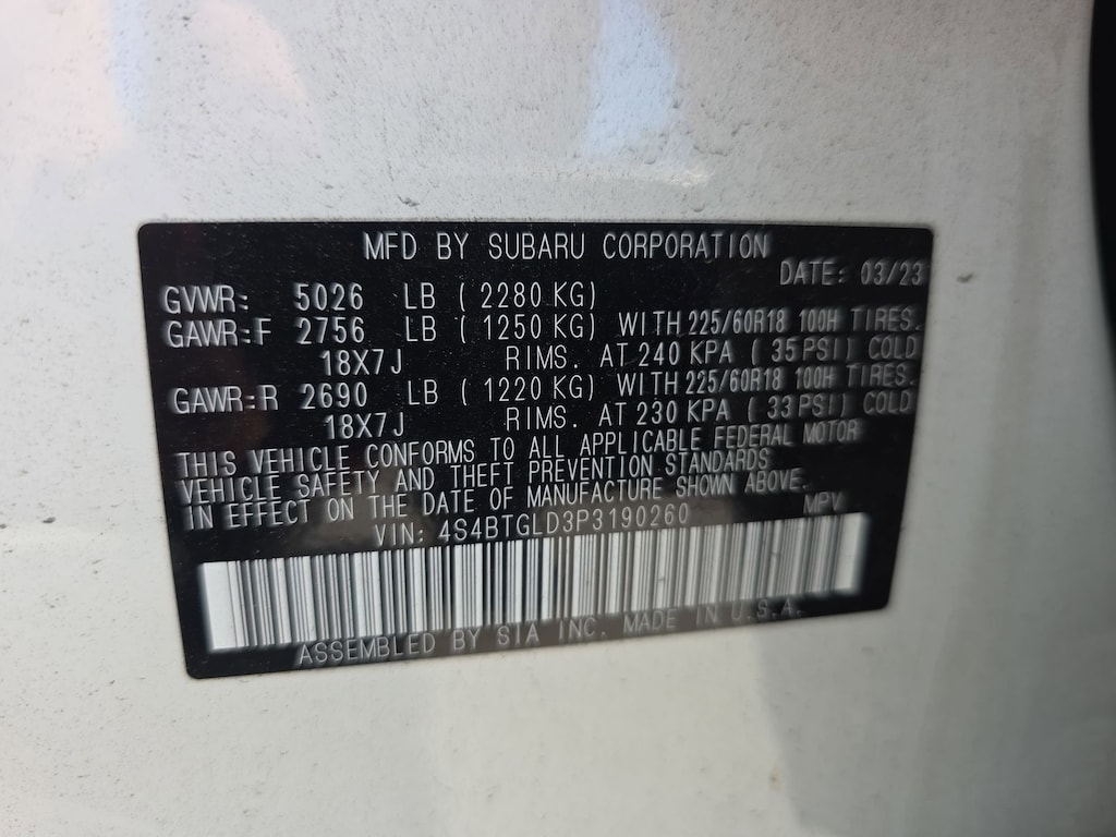 Subaru Certifed, Clean Carfax, Carfax One Owner. Power Moonroof & Navigation & RAB (Power Moonroof and Reverse Automatic Braking (RAB) System), Subaru Certified Pre-Owned Certified, 4-Wheel Disc Brakes, 4.111 Axle Ratio, 6 Speakers, ABS brakes, Air Conditioning, Alloy wheels, AM/FM radio: SiriusXM, Auto High-beam Headlights, Auto-dimming Rear-View mirror, Automatic temperature control, Brake assist, Bumpers: body-color, Compass, Driver door bin, Driver vanity mirror, Dual front impact airbags, Dual front side impact airbags, Electronic Stability Control, Emergency communication system: STARLINK Safety Plus (3-year free trial), Exterior Parking Camera Rear, Four wheel independent suspension, Front anti-roll bar, Front Bucket Seats, Front Center Armrest w/Storage, Front dual zone A/C, Front fog lights, Front reading lights, Fully automatic headlights, Garage door transmitter: HomeLink, Heated door mirrors, Heated Front Bucket Seats, Heated front seats, Heated rear seats, Illuminated entry, Knee airbag, Leather Shift Knob, Leather steering wheel, Low tire pressure warning, Navigation System, Occupant sensing airbag, Outside temperature display, Overhead airbag, Overhead console, Panic alarm, Passenger door bin, Passenger vanity mirror, Power door mirrors, Power driver seat, Power Liftgate, Power moonroof, Power passenger seat, Power steering, Power windows, Radio: Subaru STARLINK 11.6" Multimedia Nav System, Rear anti-roll bar, Rear Seat Back Protector, Rear seat center armrest, Rear window defroster, Rear window wiper, Remote keyless entry, Roof rack, Security system, Speed control, Speed-sensing steering, Split folding rear seat, Spoiler, StarTex-Trimmed Upholstery, Steering wheel mounted audio controls, Steering Wheel Paddle Shift Control Switches, Tachometer, Telescoping steering wheel, Tilt steering wheel, Traction control, Trip computer, Turn signal indicator mirrors, Variably intermittent wipers, and Wheels: 18" x 7J Black Aluminum Alloy.