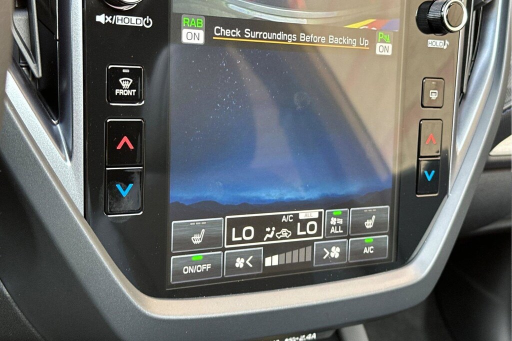 Harman/kardon Audio & Navigation & RAB (Radio: Subaru 11.6" Multimedia Navigation System and Reverse Automatic Braking (RAB) System), 4-Wheel Disc Brakes, 6 Speakers, ABS brakes, Air Conditioning, Alloy wheels, AM/FM radio: SiriusXM with 360L, Anti-whiplash front head restraints, Auto High-beam Headlights, Auto-Dimming Exterior Mirror w/Approach Light, Auto-Dimming Mirror w/Compass & HomeLink, Automatic temperature control, Brake assist, Bumpers: body-color, Cargo Tray, Door Projector Lights, Driver door bin, Driver vanity mirror, Dual front impact airbags, Dual front side impact airbags, Electronic Stability Control, Emergency communication system: MySubaru Safety (3-year free trial), Exterior Parking Camera Rear, Four wheel independent suspension, Front anti-roll bar, Front Bucket Seats, Front Center Armrest, Front dual zone A/C, Front fog lights, Front reading lights, Fully automatic headlights, Heated door mirrors, Heated Front Bucket Seats, Heated front seats, Heated steering wheel, Illuminated entry, Knee airbag, Leather steering wheel, Low tire pressure warning, Occupant sensing airbag, Outside temperature display, Overhead airbag, Overhead console, Panic alarm, Passenger door bin, Passenger vanity mirror, Perforated Leather-Trimmed Upholstery, Power door mirrors, Power driver seat, Power Liftgate, Power moonroof: Panoramic, Power passenger seat, Power steering, Power windows, Radio data system, Radio: Subaru 11.6" Multimedia Plus System, Rear anti-roll bar, Rear seat center armrest, Rear window defroster, Rear window wiper, Remote keyless entry, Security system, Speed control, Speed-sensing steering, Split folding rear seat, Spoiler, Steering wheel mounted audio controls, Sunshade - Windshield, Tachometer, Telescoping steering wheel, Tilt steering wheel, Traction control, Trip computer, Turn signal indicator mirrors, Variably intermittent wipers, and Wheels: 18" x 7.0 J Dark Metallic Aluminum-Alloy.