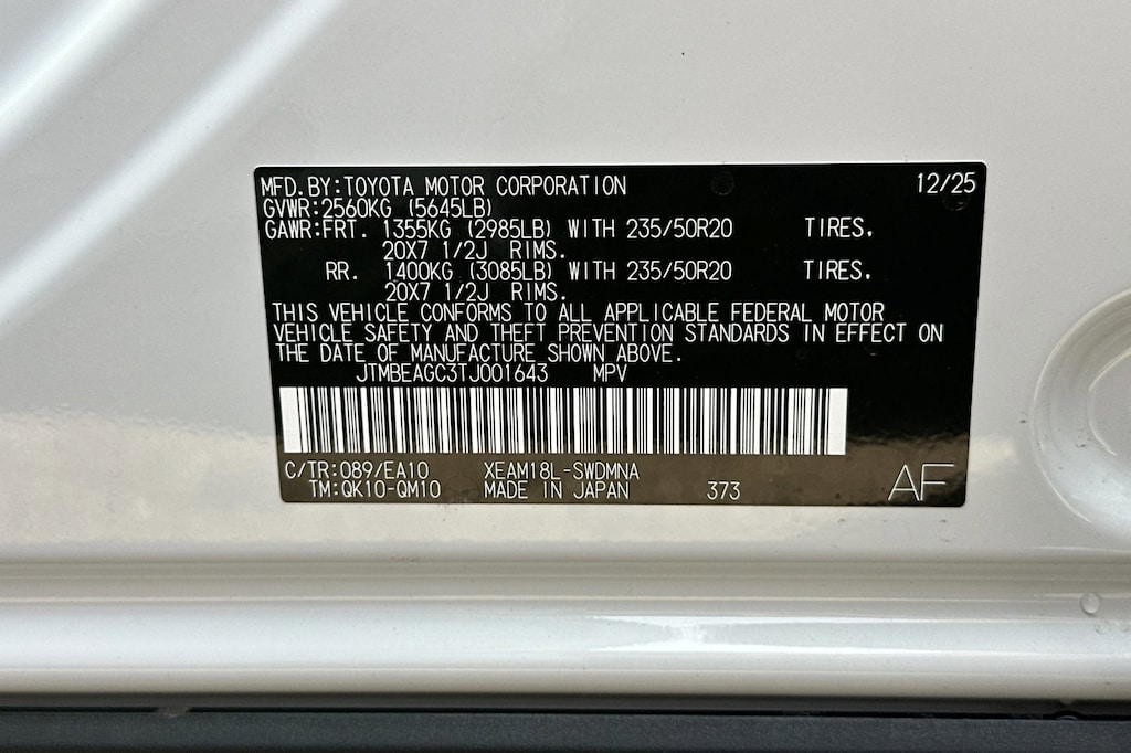 • Rear tires: 235/50VR20.0