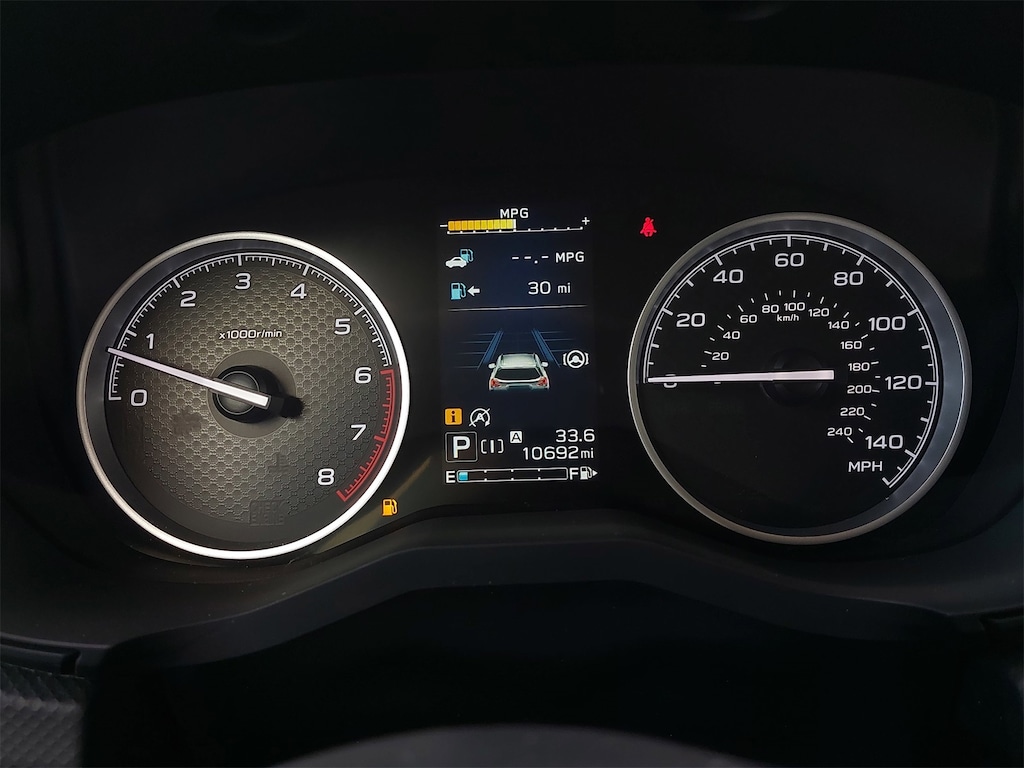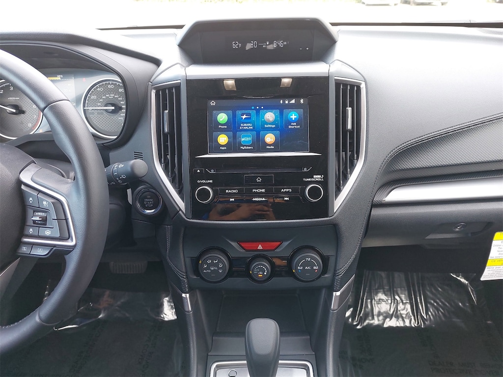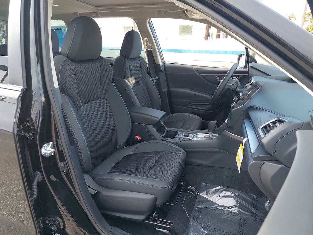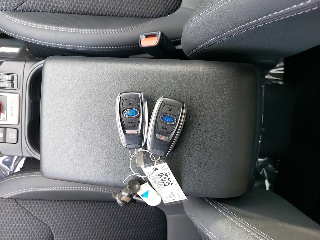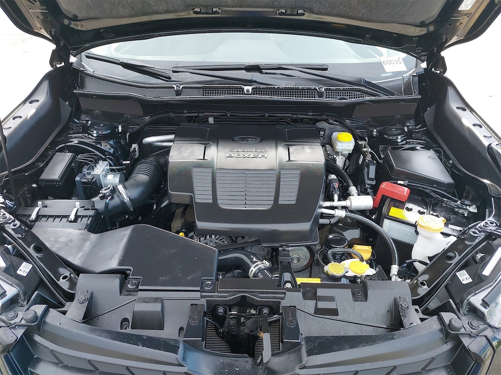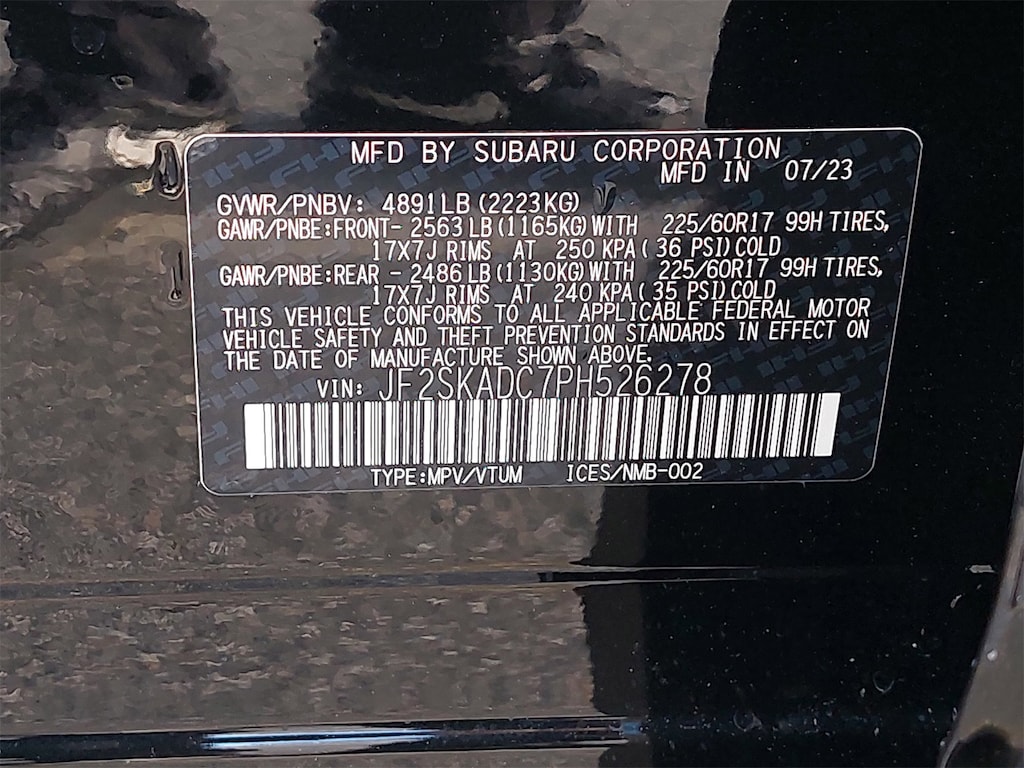 Standard Model, 3.70 Axle Ratio, 4-Wheel Disc Brakes, 6 Speakers, ABS brakes, Air Conditioning, All-Weather Floor Liners, Alloy wheels, AM/FM radio: SiriusXM, Anti-whiplash front head restraints, Auto High-beam Headlights, Automatic temperature control, Brake assist, Bumpers: body-color, Cargo Net, CD player, Driver door bin, Driver vanity mirror, Dual front impact airbags, Dual front side impact airbags, Electronic Stability Control, Emergency communication system: STARLINK Safety and Security (Subscription Required), Exterior Parking Camera Rear, Four wheel independent suspension, Front anti-roll bar, Front Bucket Seats, Front Center Armrest, Front fog lights, Front reading lights, Fully automatic headlights, Heated door mirrors, Heated Front Bucket Seats, Heated front seats, Illuminated entry, Knee airbag, Low tire pressure warning, Occupant sensing airbag, Outside temperature display, Overhead airbag, Overhead console, Panic alarm, Passenger door bin, Passenger vanity mirror, Power door mirrors, Power driver seat, Power moonroof: Panoramic, Power steering, Power windows, Premium Cloth Upholstery, Radio data system, Radio: Subaru Starlink 6.5" Multimedia Plus System, Rear anti-roll bar, Rear Bumper Cover, Rear seat center armrest, Rear window defroster, Rear window wiper, Remote keyless entry, Roof rack: rails only, Security system, Speed control, Speed-sensing steering, Splash Guards, Split folding rear seat, Spoiler, STARLINK/Apple CarPlay/Android Auto, Steering wheel mounted audio controls, Tachometer, Telescoping steering wheel, Tilt steering wheel, Traction control, Trip computer, Variably intermittent wipers, and Wheels: 17" x 7.0 J Black Machine Finish Alloy.